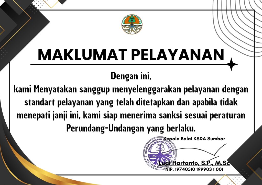 Link PDF Silahkan di Download : http://bksdasumbar.org/wp-content/uploads/2025/10/Standar-Pelayanan-Perizinan-BKSDA-Sumbar.pdf